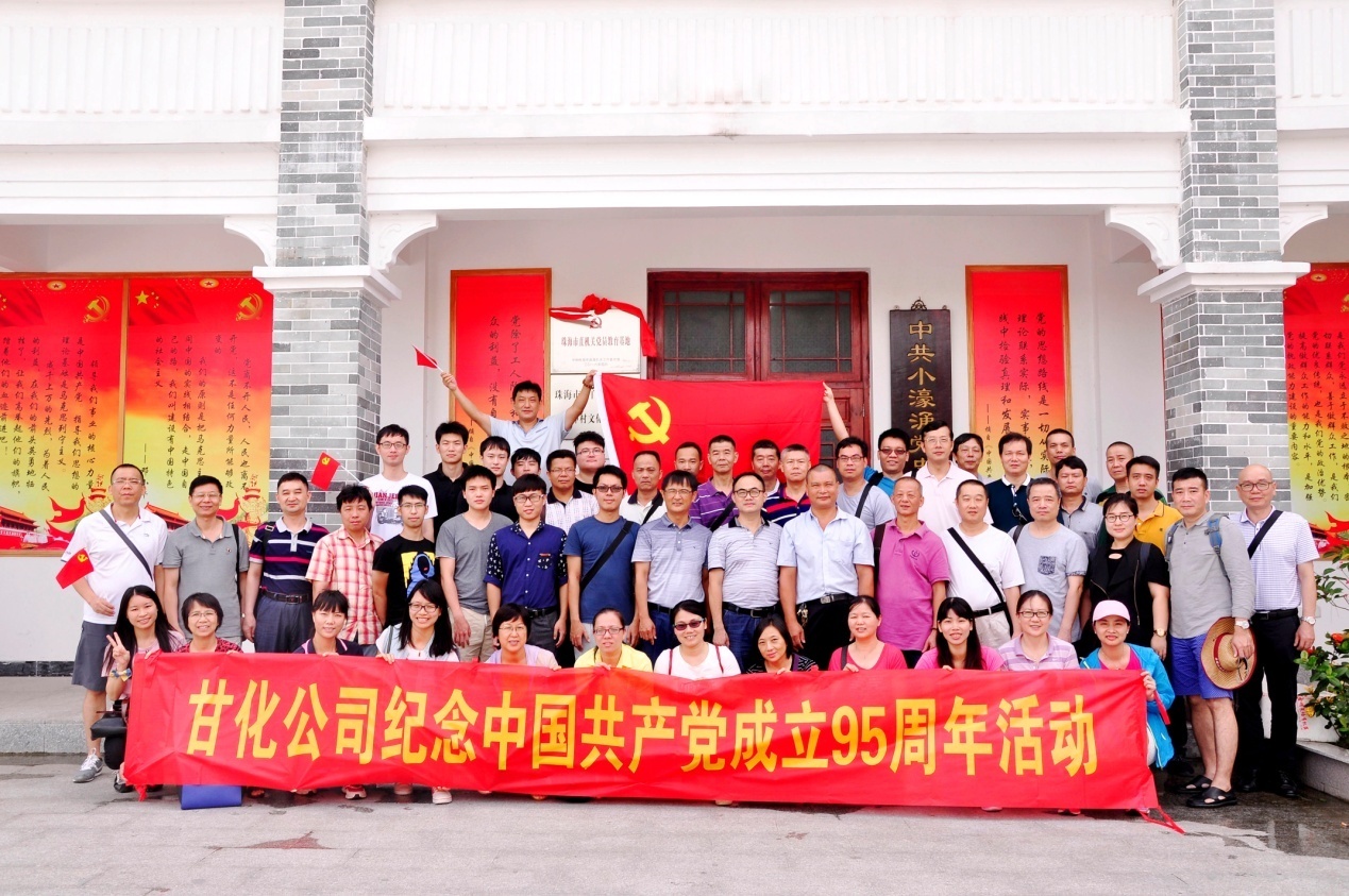 為紀念中國共產(chǎn)黨建黨95周年,并進行愛國愛黨愛崗教育,2016年7月2日上午,甘化公司黨委組織本部和子公司全體黨員到珠海斗門小濠涌黨史教育基地參觀學習,接受革命教育,重溫入黨誓詞,以莊嚴神圣的方式慶祝黨的生日。
