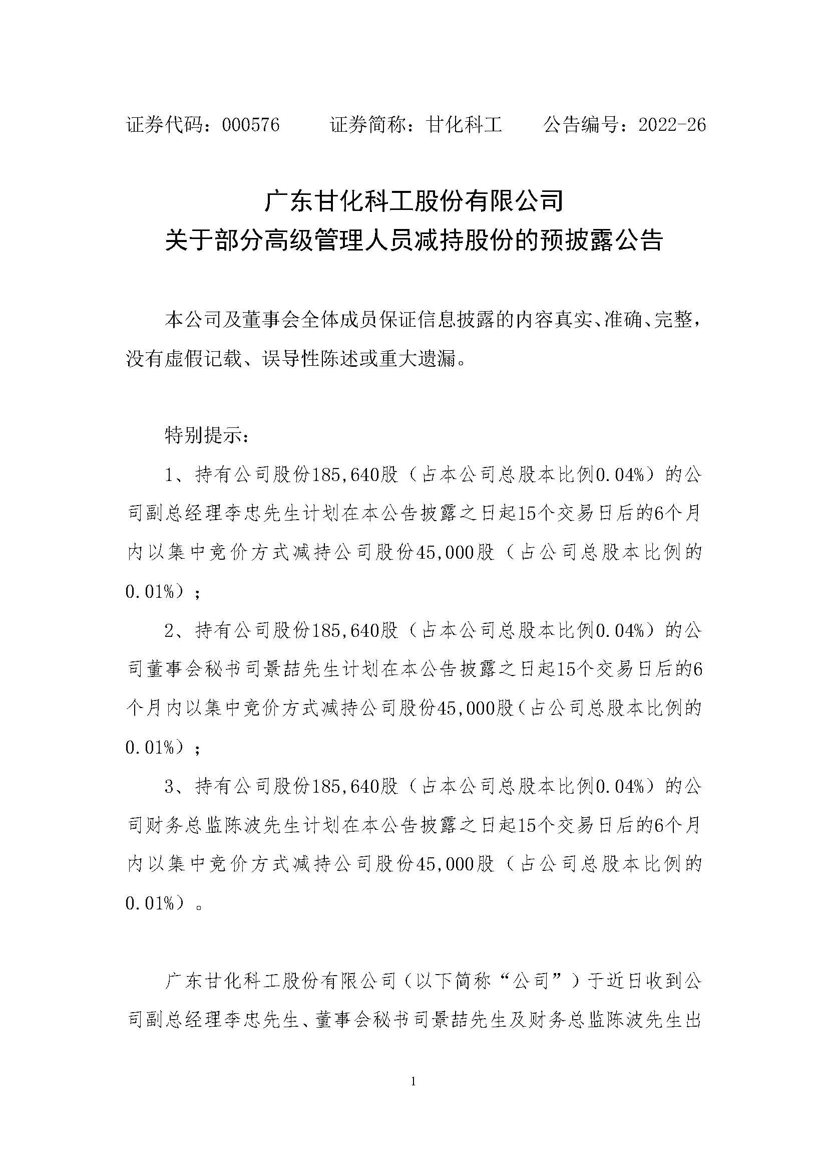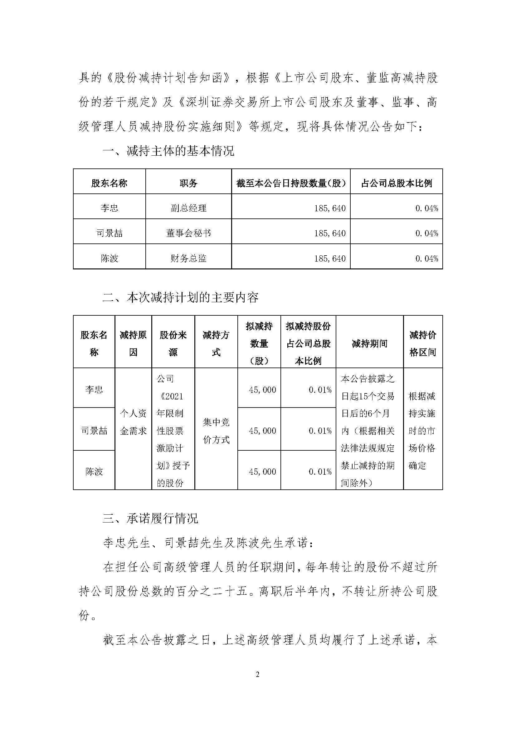 關于部分高級管理人員減持股份的預披露公告